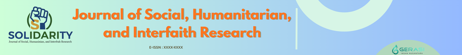 Solidarity: Journal of Social, Humanitarian, and Interfaith Research is an academic journal dedicated to advancing scholarly discussion on social issues, humanitarian concerns, and interfaith relations. It provides a platform for researchers, educators, and practitioners to critically examine contemporary social challenges through rigorous and interdisciplinary approaches.